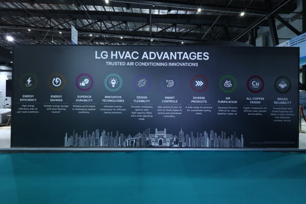 LGE India is also showcasing its 5th generation VRF MultiV5 system equipped with Ultimate Inverter compressor providing high energy efficiency, Dual Sensing Control which is an intelligent mechanism that simultaneously tracks temperature and humidity to maintain a comfortable environment & reduce energy consumption. With an operational envelope extending from -20°C to 53°C, the Multi V5 is built to deliver consistent performance across the country’s most demanding climate zones.